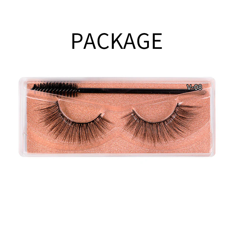 Natural 3D Faux Mink Lashes Colorful Package with Lash Brush V08