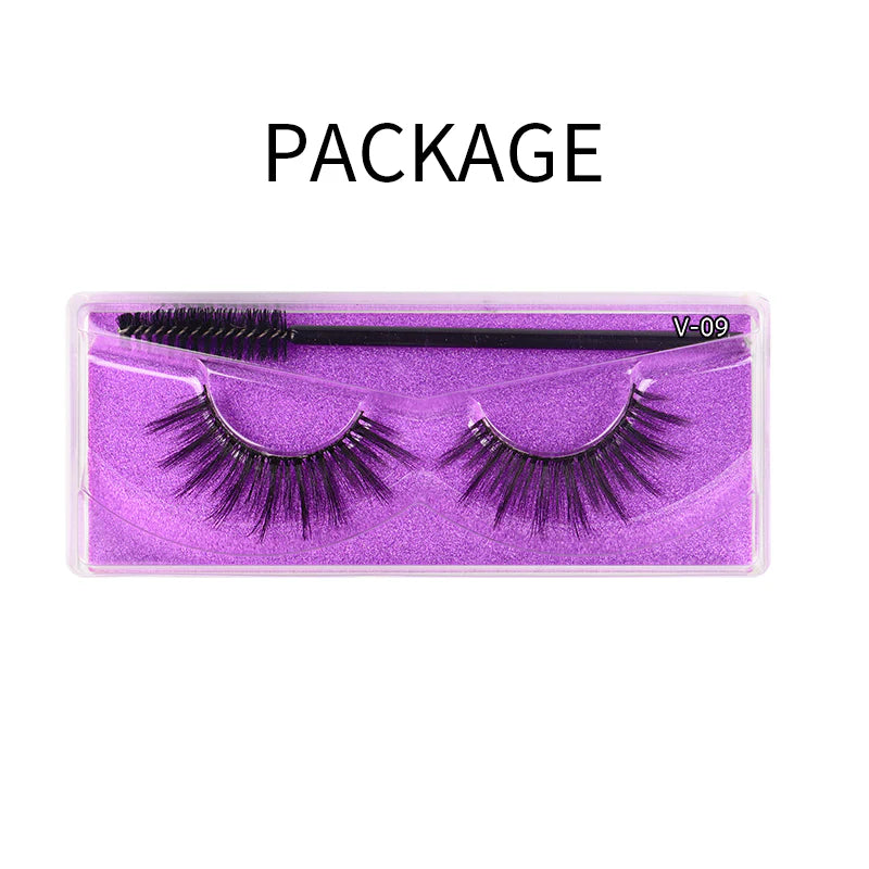 Natural 3D Faux Mink Lashes Colorful Package with Lash Brush V09