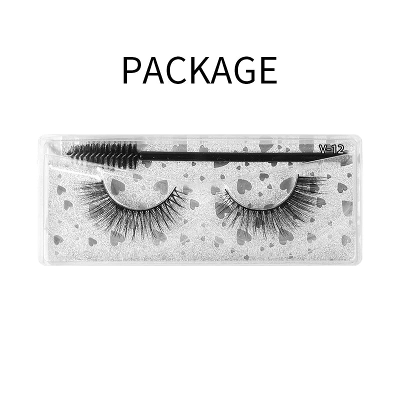 Natural 3D Faux Mink Lashes Colorful Package with Lash Brush V12